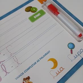 Atividades divertidas e educativas para os pequenos aprenderem de maneira fácil e divertida. Acompanha uma caneta para escrever, desenhar e apagar quantas vezes quiser!