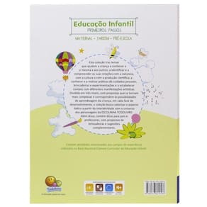 Esta coleção traz temas que ajudam a criança a conhecer a si mesma e aos outros, a identificar e a compreender as suas relações com a natureza, com a cultura e com a produção científica, a conhecer e a realizar práticas de cuidados pessoais, brincadeiras e experimentações e a estabelecer contato com diferentes manifestações artísticas. Dividida em três níveis, com propostas que se tornam mais complexas e correspondem às possibilidades de aprendizagem da criança, em cada fase de desenvolvimento, a coleção busca valorizar o aspecto lúdico a partir de interatividade com o universo dos personagens da ESCOLINHA TODOLIVRO. Além disso, contém dicas para pais e professores, com propostas de brincadeiras e sugestões complementares. Marca: TODOLIVRO*