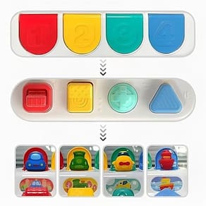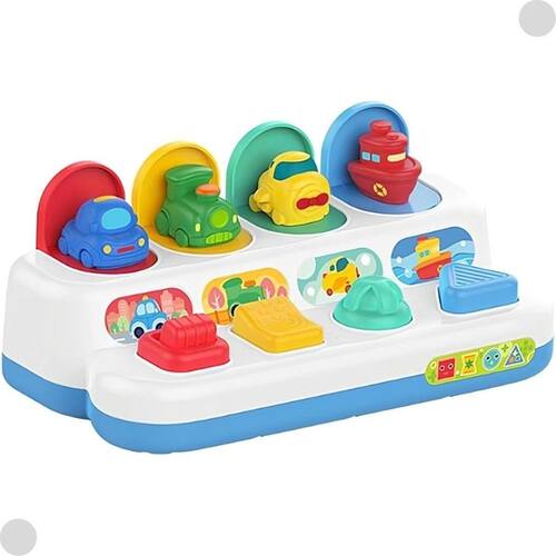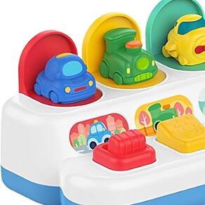 Aperte os botões ou gire para ver o veiculo que vai aparecer, aperte novamente para tampar. Com cores diferentes que desperta a atenção de qualquer criança.