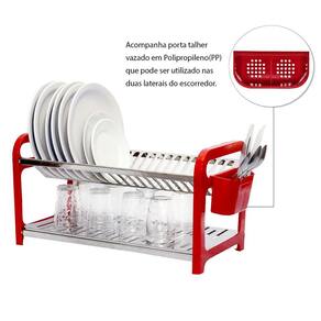 Escorredor 20 pratos Inox com Porta Talheres Cor: Vermelho Escorredor 20 pratos Inox Preto com Porta Talheres.