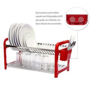 Escorredor 20 pratos Inox com Porta Talheres Cor: Vermelho Escorredor 20 pratos Inox Preto com Porta Talheres.