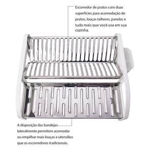 Este escorredor versátil oferece duas amplas superfícies para acomodar seus pratos, louças, talheres, panelas e tudo mais que você utiliza no dia a dia.