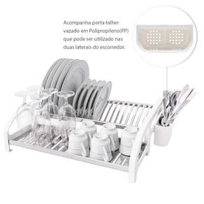Escorredor cama 20 pratos inox branco com porta talheres