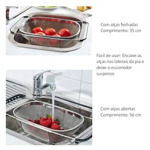 Escorredor de Alimentos Salada Arroz Retratil Inox Alça Pia