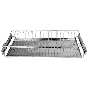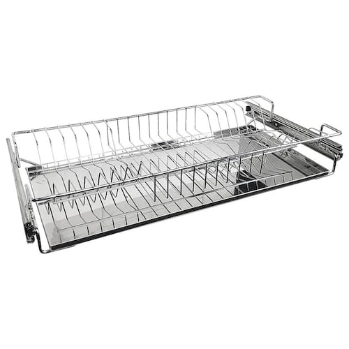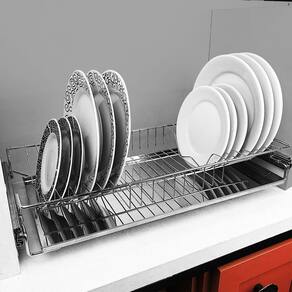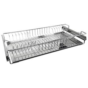- Código: 8754 - Cromado - Medidas: 670x90x250mm / 67x9x25cm (Largura x Altura x Profundidade) - Material e acabamento: Aço com acabamento cromado - Estrutura interna eficiente: possui espaço para pratos e utensílios como talheres, copos e panelas. - Bandeja coletora de água feita em aço inox 430 — resistente à corrosão e fácil de limpar. - Garantia: 12 meses