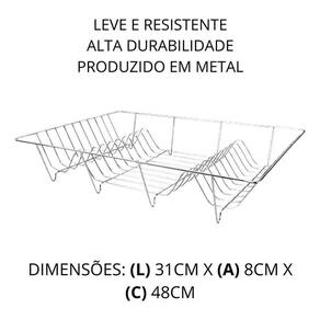 Escorredor De Louça Aramado 18 Pratos - Ferro Uma solução robusta e prática para quem deseja manter a bancada da cozinha organizada. Fabricado em metal resistente com pintura ou acabamento preto, o design permite um eficiente escoamento da água, evitando acúmulo e permitindo que pratos, copos e talheres sequem mais rapidamente . Seu formato tipo cama oferece suporte para cerca de 18 pratos dispostos verticalmente, conferindo organização e praticidade durante o uso, que facilita a limpeza e evita respingos sobre a pia ou bancada. A estrutura leve e compacta é ideal para quem busca otimização do espaço sem abrir mão de resistência e durabilidade Especificações: Dimensões: 48?cm de comprimento, 31?cm de largura e 9?cm de altura Material: Ferro Cor: Cromado Peso Aprox.: 300g