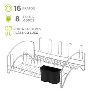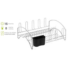 MODELO PRATA - ESCORREDOR CROMADO COM PORTA TALHERES PRATA INOX