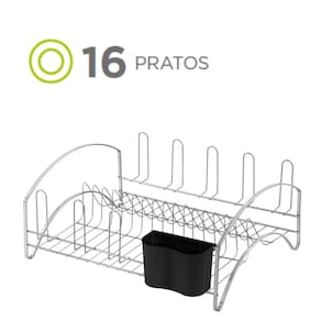 Escorredor de louças fabricado em aço cromado, material conhecido por sua durabilidade e resistência.