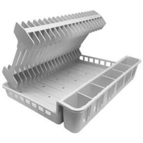 Especificações técnicas: - marca: policorda - linha: premium - modelo: dobrável - material: polipropileno virgem com anti uv - tamanho escorredor fechado : 35 cm x 27 cm - tamanho escorredor aberto : 48 cm x 35 cm - altura: 7 cm - quantidade de cavidades para os talheres: 6 - espaço para panelas e pratos: sim - capacidade de pratos: 19 - contém orifícios na bandeja e no escorredor dos talheres para o escoamento da água - cor: preto, branco, offwhite e vermelho - conteúdo: 1 escorredor de louça