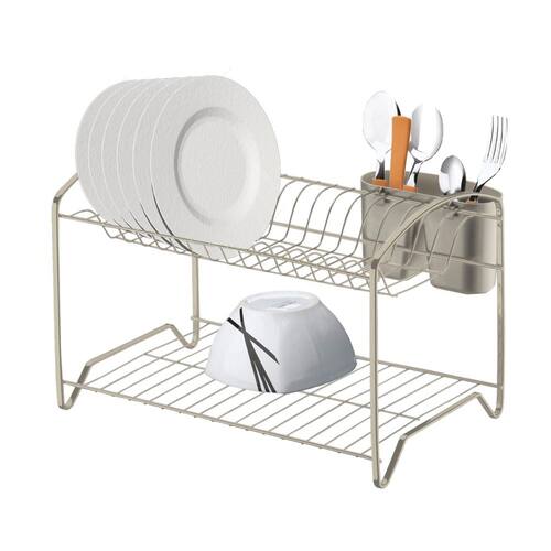 O Escorredor de Louças conta com uma estrutura em aço piatina (aço em formato achatado) que proporciona design diferenciado e traz beleza para cozinha. Possui 2 andares o que garante mais espaço para armazenar as louças, além de possuir porta talheres removível.