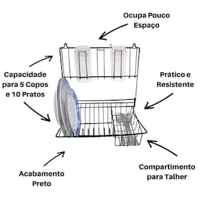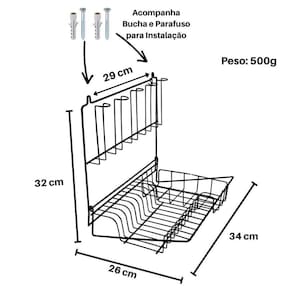Escorredor de Louça Parede Suspenso Preto para 10 pratos 5 Copos Escorredor de Pratos, Copos e Talheres de Parede Dobrável Preto Ideal para quem procura praticidade e tem pouco espaço em sua cozinha, área de lazer, churrasqueira. O Escorredor de Louça de Parede Preto é compacto e irá te ajudar, utilizando uma área suspensa de sua pia, liberando ainda mais espaço para você usar. Sem contar que deixa sua cozinha com ares de modernidade. Com capacidade para 10 pratos, 5 copos e um compartimento para talheres, te auxiliará muito no seu dia a dia. Além disso, é muito versátil por ser retrátil, podendo ser recolhido quando não estiver sendo utilizado. Deixando o espaço de sua bancada livre para ser utilizada. Feito com material de qualidade e com uma estrutura resistente, é de fácil e rápida instalação, já vem com as buchas e os parafusos para sua fixação na parede. A solução para quem procura praticidade e tem problemas de espaço. Características: Acabamento: PretoComposição: Aço Carbono e PPCapacidade: 10 Pratos e 5 Copos + TalheresGarantia: 3 meses contra defeito de fabricaçãoPeso: 500gFunção: Escorredor de Pratos, Copos, Talheres e Louças em GeralDimensões: Aberto - 32cm X 26cm x 34cm (A x L x C) Fechado - 32cm x 9cm x 34cm (A x L x C) Indicação de Uso: Pias, Cozinhas, Churrasqueiras, Varanda Gourmet, Áreas de Lazer Dicas de Uso e Conservação: Após o uso, é recomendado que seque o escorredor para maior durabilidade do acabamento.Utilize apenas pano macio, água e sabão neutro. Não utilize abrasivos para não danificar o produto. Tags: escorredor parede suspenso, escorredor de louca suspenso cozinha, escorredor de louça parede, escorredor de lousa suspenso, escorredor de prato de parede, escorredor pia suspenso, porta pratos de parede, escorredor de pratos de parede cozinha, escorredor de parede, escorredor suspenso, escorredor de louca suspenso, escorredor suspenso cozinha, escorredor de pratos suspenso, escorredor louças suspenso, escorredor pratos parede, escorredor de louça dobravel, escorredor prato parede cozinha, escorredor de loucas suspenso, escorredor de pia suspenso, escorredor louca suspenso, escorredor de louca dobravel, escorredor pratos suspenso cozinha, escorredor de prato suspenso, escorredor de cozinha suspenso, escorredor dobravel, escorredor de parede dobravel, escorredor de pratos preto, escorredor de louças preto, escorredor de pratos de parede preto,escorredor de louças de parede preto