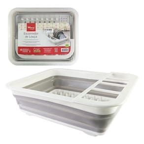 Escorredor de louças perfeito para eliminar a bagunça na pia e manter a cozinha organizada.Design retrátil que se ajusta a diferentes tamanhos de pia, economizando espaço quando não está em , ideal para cozinhas pequenas.Diversos espaços para armazenar copos, pratos e um suporte removível para talheres, garantindo uma secagem organizada.Feito com material de silicone durável e resistente, proporcionando durabilidade sem ferrugem e sendo compacto e fácil de limpar.Especificações: Material: Polipropileno e Silicone, Dimensões: Altura: 11,5cm x Largura: 36cm x Profundidade: 30cm, Peso: Aprox. 380g.Conteúdo: 01 Escorredor de Louças Dobrável de Silicone.