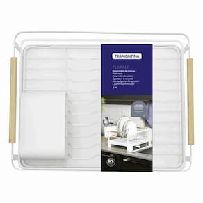 - Para aqueles dias de rotina corrida que você não tem muito tempo para as tarefas de casa, conte com o escorredor de louça Tramontina com secador e porta talheres branco.