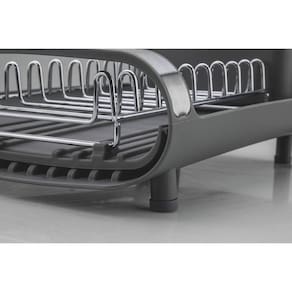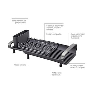 Para aqueles dias de rotina corrida que você não tem muito tempo para as tarefas de casa, conte com o escorredor de louça Tramontina com secador e porta talheres compacto grafite. Desenvolvido especialmente para cozinhas pequenas e que possuam bancadas com pouco espaço, ele conta com um prático porta talheres em polipropileno com perfeito encaixe em sua superfície. Compacto mais sem deixar de acomodar as louças que você precisa, ele comporta 9 pratos, talheres e copos, sendo o porta copos expansível. Possui alças que proporcionam maior segurança no manuseio e inclinação que direciona a água para a bandeja coletora, fazendo com que ela caia direto para a pia. Um item prático e indispensável para quem está sempre na correria!