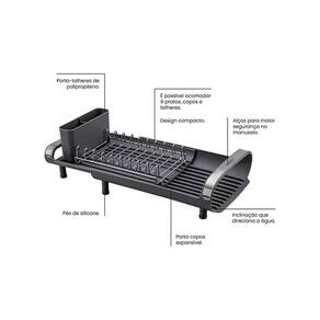 Escorredor De Louça Tramontina Plurale Grafite Inox Apresentando muita praticidade para o seu dia a dia, o Escorredor de Louças Plurale feito em aço inox possui compartimentos para talheres, copos e 9 pratos. O material de sua composição permite maior resistência e durabilidade, mesmo em contato constante com água. Os pés de apoio são produzidos com silicone, para garantir maior segurança às superfícies. Acabamento em alto brilho e design moderno são características que se completam a grande funcionalidade deste item. Lembrando que para manter a beleza e o brilho do produto é recomendada a lavagem somente com detergente e esponja, enxaguando com água quente e secando logo ems eguida, a fim de evitar manchas por substâncias contidas na água - como o cloro, por exemplo Características: Capacidade para 9 pratos Bandeja Retrátil Porta-Talheres Removível Detalhes das Alças em Aço Inox Base e Port-Talheres em Polipropileno Especificações: Marca: Tramontina Modelo: Escorredor de Louças Contém: 01 peça Cor: Grafite Material Presente: Aço Inox e Polipropileno Imagens meramentes Ilustrativas Marca: Não Informado