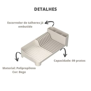 O escorredor de louças Trium compact é o companheiro ideal para sua cozinha. Com design compacto e elegante, ele se encaixa perfeitamente em bancadas pequenas. Disponível em diversas cores, combina praticidade, qualidade e estilo em um só produto. Não perca tempo secando louças, escolha Trium. Fabricado em material resistente PP Características do Produto: