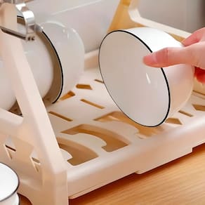 Transforme sua pia em um espaço funcional e elegante! Um design inteligente que une capacidade, organização e um toque de modernidade ao seu ambiente. -Ele possui muitas repartições e uma bandeja removível para que a água não caia em sua pia para que ela sempre fique seca e limpa. - Suas repartições proporcionam ampla capacidade de armazenamento, permitindo que você separe e organize seus utensílios com facilidade. -Feito de plástico de alta qualidade, este escorredor é durável e resistente, além de fácil de limpar. - Sua estrutura estável garante segurança e durabilidade, acompanhando sua rotina por muito tempo. -Pés antiderrapantes. Especificações Técnicas: - Material: Polipropileno - Cor: Bege - Dimensões Aprox.: 34cm (ALTURA) x 24,5cm (LARGURA) x 30cm (COMPRIMENTO) - Capacidade: Até 12 pratos na parte superior Itens Inclusos: - 01x Escorredor