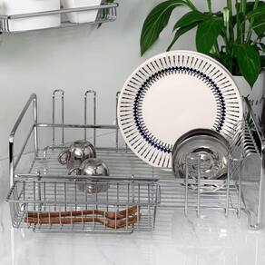 Escorredor de Louças 14 Pratos 8 Copos Aço Cromado - InformaçõesMaterial: Aço carbono