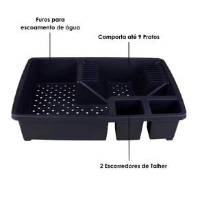 Escorredor de Louças 9 Pratos com Porta Talheres e Copos Preto Organização e Praticidade para Sua Cozinha