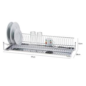 Este escorredor com bandeja em inox evita respingos. De aramado resistente é um peça para qualquer modelo de cozinha. O Porta Pratos Aéreo Fixo com Bandeja da Schmitt é um suporte para louças em geral que pode ser fixado. Conta com espaço para cerca de 30 pratos e possui bandeja inox removível em sua base.