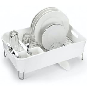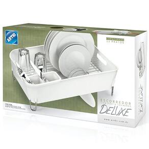 Escorredor de Louças com Porta talheres Deluxe 12 Pratos Branco Arthi Escorredor de pratos com espaço para comportar também copos e porta talheres removível. Conta com um bico móvel de escoamento da água direto para a pia, evitando a água parada dentro do escorredor. Capacidade: 12 pratos Material: Plástico Cor: Branco Dimensões aproximadas: 50x31x18cm
