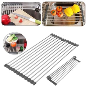 Especificações: Medidas: 48x29cm Material: aço inoxidável 201 Diâmetro do tubo redondo: 6mm Material da tira de borracha: borracha macia de PVC Tipo: escorredor Características: Fácil de limpar Estilo: Contemporâneo