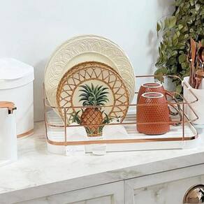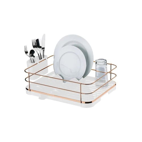 Escorredor De Louças Future 12 Pratos Talheres Plástico Aço Cor: Branco e Rosé Gold A loja Brasil UD traz para você mais um produto cheio de requinte e qualidade: Este Escorredor de Louças proporciona beleza para a cozinha com seu design diferenciado. A capacidade do Escorredor de Louças é para 12 pratos, além de ter local específico para o armazenamento dos talheres. Mantenha a sua cozinha prática e organizada. Acompanha bandeja escorredora de água. Informações do produto: Matéria prima base: Aço Carbono e Plástico. Cor/acabamento: Preto/BrancoDetalhes: Rosé Gold, Dourado, Prateado, Ônix Capacidade: 12 Pratos Medidas: 40,5 x 35,5 x 13,5 cm Peso: 1 kg Composição: 01 Base em plástico 01 Acabamento em Piatina 01 Suporte Aramado Cuidado e Conservação: - Para limpeza periódica recomenda-Se o uso de um pano macio, água e sabão neutro. - Nunca utilize materiais abrasivos, lã de aço, esponjas ásperas, solventes ou produtos químicos corrosivos cloro, água sanitária . Imagens ilustrativas.