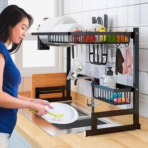 Instalação direta sobre a pia, aproveitando o espaço vertical Divisões estratégicas para pratos, copos, talheres, panelas, tábuas, detergente e utensílios Water drainage direto para a pia, evitando acúmulo e facilitando a limpeza Resistente à umidade e à corrosão, ideal para ambientes úmidos Compacto, funcional e elegante, perfeito para cozinhas pequenas