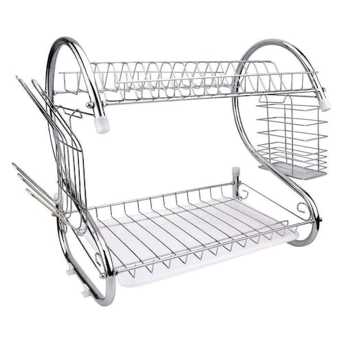 Características: - Escorredor de louça 2 andares - Porta Copos - Cesta para Talheres - Bandeja de cor branca em sua base - Aço Cromado resistente