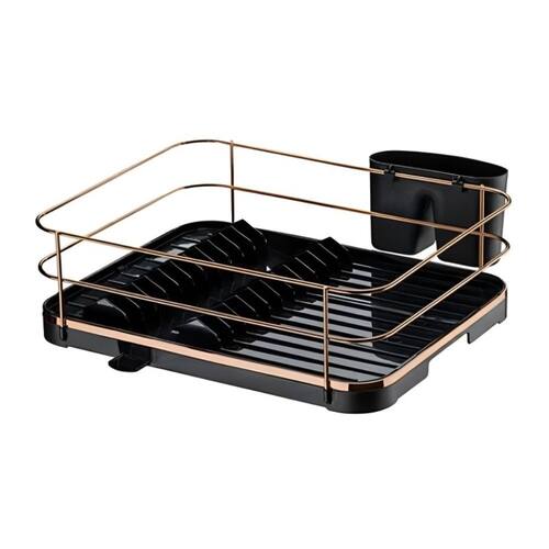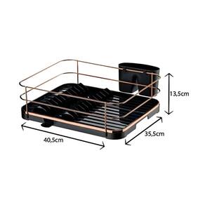 O Escorredor de Louças Preto Cromado possui bico fixo para vazão da água. Você direciona essa saída de água para dentro da cuba e a pia fica sempre seca. Tem capacidade para 11 pratos e um porta talheres removível, que pode ser posicionado onde for mais conveniente. É fabricado em plástico e aço carbono, com detalhe em aço piatina cromado (aço em formato achatado). Além do tradicional tratamento superficial, onde são aplicadas até 4 camadas de metal, os produtos são revestidos com uma camada extra do protetivo especial Rust Free, garantindo cores vivas e brilhantes, além de maior resistência contra ferrugem. OBS: o bico é fixo e imóvel, de modo que não é possível trocar de lugar ou fechar o mesmo.