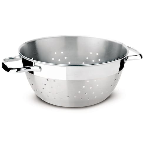 Totalmente feito de aço inox, por isso não solta nenhum resíduo nos alimentos, mantendo-os saudáveis. Altamente durável, mantém as características originais, preservando a beleza, a higiene e a durabilidade do material. Seu desenho limpo e sem cantos torna a limpeza muito mais fácil. Acabamento fosco com detalhes em brilho deixa o produto mais nobre. Ideal para coar todos os tipos de massas. Pode ser lavado diariamente na máquina de lavar louças.