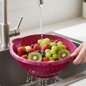 - Função: Escorrer massas, lavar frutas, legumes e verduras