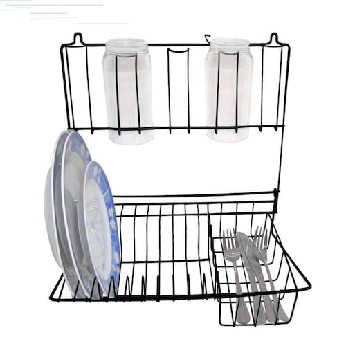 Escorredor de Pratos, Copos e Talheres de Parede Dobrável Preto