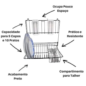 Com capacidade para 10 pratos, 5 copos e um compartimento para talheres, te auxiliará muito no seu dia a dia.