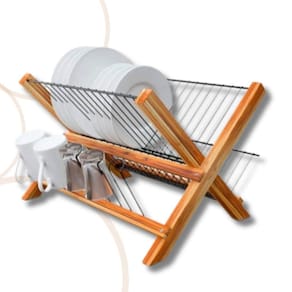 Escorredor De Prato Em Bambu Ecológico Porta Copos Dobravel