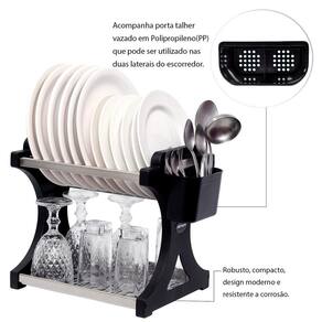 Escorredor De Pratos Alto Inox 12 Pratos Cor: Preto Escorredor De Pratos Alto Inox 12 Pratos