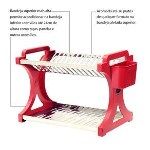 Escorredor De Pratos Alto Vermelho Inox 16 Pratos Cor: Vermelho Escorredor De Pratos Alto Vermelho Inox 16 Pratos