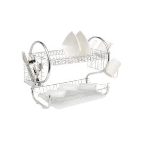 Escorredor De Pratos Duplo Talher Porta Copos Aço Cromado Escorredor De Louça Aço 14 Pratos Top Rio