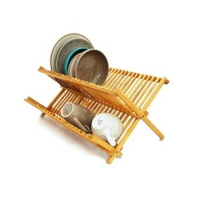Escorredor De Pratos E Louças Em Bambu 100% Natural Dobrável