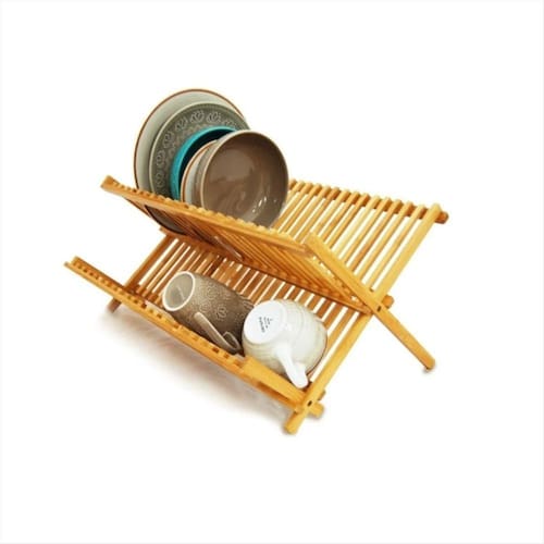 Design moderno que une funcionalidade e estética Feito de bambu 100% natural, ecológico e resistente Estrutura dobrável para fácil armazenamento e economia de espaço Dois níveis para acomodar louças de diferentes tamanhos Resistente à umidade, rachaduras e manchas, garantindo durabilidade
