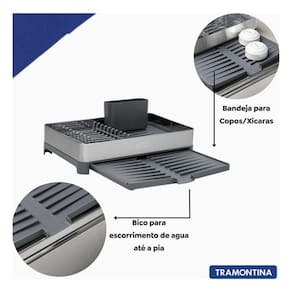 Ficha Técnica: Marca: Tramontina Linha: Plurale Modelo: Escorredor de Louça Tramontina Plurale Material: Aço Inox e Polipropileno Cor: Grafite Capacidade: Acomoda 9 pratos, copos e talheres