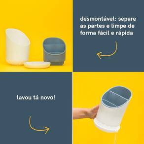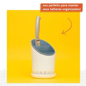 Esse é o escorredor de talheres da OIKOS. Super prático, esse escorredor é pensado para se adaptar ao seu dia-a-dia. Vem com pires de drenagem com bico para escoamento, para evitar que a água fique armazenada dentro do recipiente. Ele tem um compartimento especial para lâminas, que permite que as facas sequem em segurança. Possui design pensado para diferentes tamanhos de talheres. Ah, e ele ainda é desmontável - bem fácil de lavar.