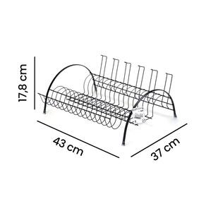 Escorredor Fantastik Arthi (2505) - Completo para a Bancada O Escorredor Fantastik da Arthi é a solução completa para secagem de louças na sua bancada. Seu design otimiza o processo de secagem, oferecendo espaço dedicado e integrado para pratos, talheres e copos, tudo em uma única e robusta estrutura. Características Físicas e Funcionais: Organização Completa: Possui espaço específico para pratos e compartimentos dedicados para porta-talheres e porta-copos, garantindo que todos os itens escorram de maneira eficiente. Design Robusto Uso de Apoio: Fácil de posicionar sobre a bancada, dispensando qualquer instalação. Marca: Arthi (Ref. 2505). Especificações Técnicas: Funcionalidade: Escorredor de louças para pratos, copos e talheres. Dimensões: Comprimento 43 X Largura 37 X Altura 17,8 cm. Material: aço cromado.