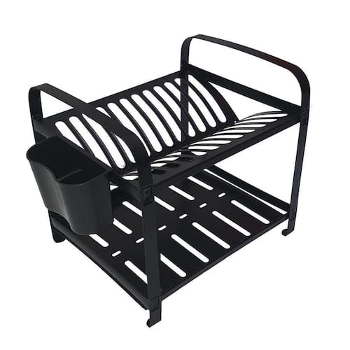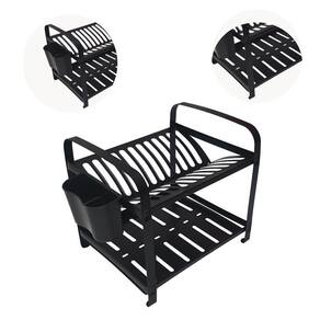 Escorredor Inox 12 Pratos Preto Com Porta Talher