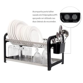 Escorredor de Pratos Inox Preto com Porta Talheres - Alta Durabilidade