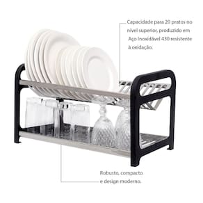 O Escorredor de Pratos Inox Preto com Porta Talheres é a opção perfeita para quem busca sofisticação e praticidade na hora de organizar a cozinha. Com capacidade para 20 pratos no nível superior, este escorredor é produzido em aço inoxidável 430 resistente à oxidação, garantindo maior durabilidade e evitando pontos de oxidação em ambientes agressivos, como regiões com maresia.