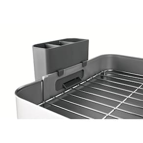 Informações Gerais Pés de silicone, não escorrega nem arranha as superfícies. Porta-talheres de polipropileno, com encaixe no corpo do escorredor. Capacidade: é possível acomodar 10 pratos, copos e talheres. Alças para maior segurança no manuseio. Design compacto. Dispõe de uma inclinação que direciona a água que escorre da louça na bandeja coletora, fazendo com que ela caia de modo direto na pia, deixando seu ambiente sempre seco e limpo.