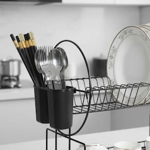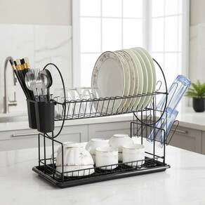 O Escorredor de Louças Duplo Inox Dois Andares RMaisCasa é a solução ideal para quem busca praticidade, resistência e design moderno na organização da cozinha. Produzido em inox de alta qualidade, com acabamento na cor preta, este escorredor é durável e funcional, perfeito para acomodar pratos, copos e talheres de forma eficiente.