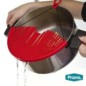 O Escorredor para panelas da Prana é um produto inovador e versátil, projetado para se adaptar a qualquer tamanho de panela, frigideira ou tigela. Seu design expansível e flexível permite que você ajuste facilmente o escorredor, basta encaixar e drenar! O segredo está no sistema "Flex Fit", que se agarra nas bordas das panelas e trava firmemente, garantindo que você possa virar a panela com segurança, drenando ingredientes, água e óleos sem complicações.