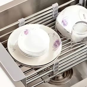 Escorredor de Pia Extensível Escorre Louça, Lava Frutas, Verduras e Legumes O Escorredor Extensível para Pia oferece uma solução prática e eficiente para a organização da cozinha. Seu design ajustável permite adapta-lo a diferentes tamanhos de pia, enquanto os braços e pés antiderrapantes garantem estabilidade e segurança. Fabricado com material ecológico de alta qualidade, é durável e fácil de limpar. Ideal para a secagem rápida de frutas, vegetais e utensílios de cozinha.